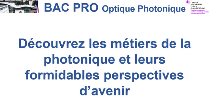 Le baccalauréat professionnel « Optique Photonique : Technologies de la Lumière » forme à la production et à la maintenance dans les secteurs de l’optique photonique : unités d’industrialisation, de production, d’assemblage et de mise en service ; services d’étude, essais et contrôle ; services de maintenance ; services d’un laboratoire et départements de recherche et développement.